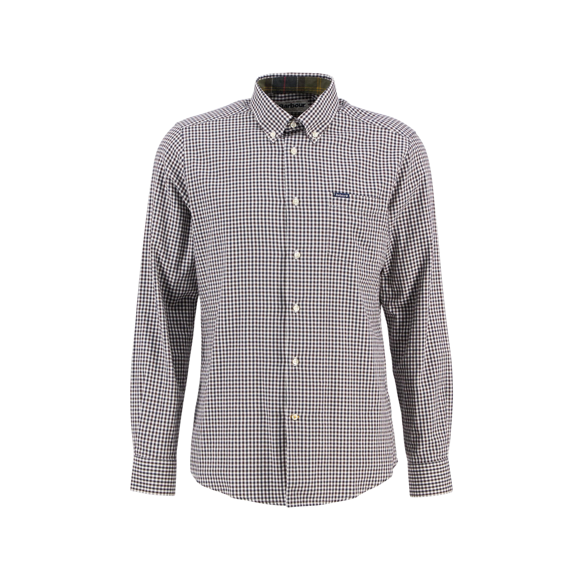 La camicia Barbour Padshaw ha un taglio sartoriale che la rende un capo elegante e casual. Caratterizzata da un design in twill spezzato gi nham, questa camicia sfoggia un motivo tartan Barbour all'interno del colletto e dei polsini per una raffinatezza discreta. Un'etichetta con il logo e lo targhetta Barbour sul taschino sinistro rifinisce discretamente il capo.
