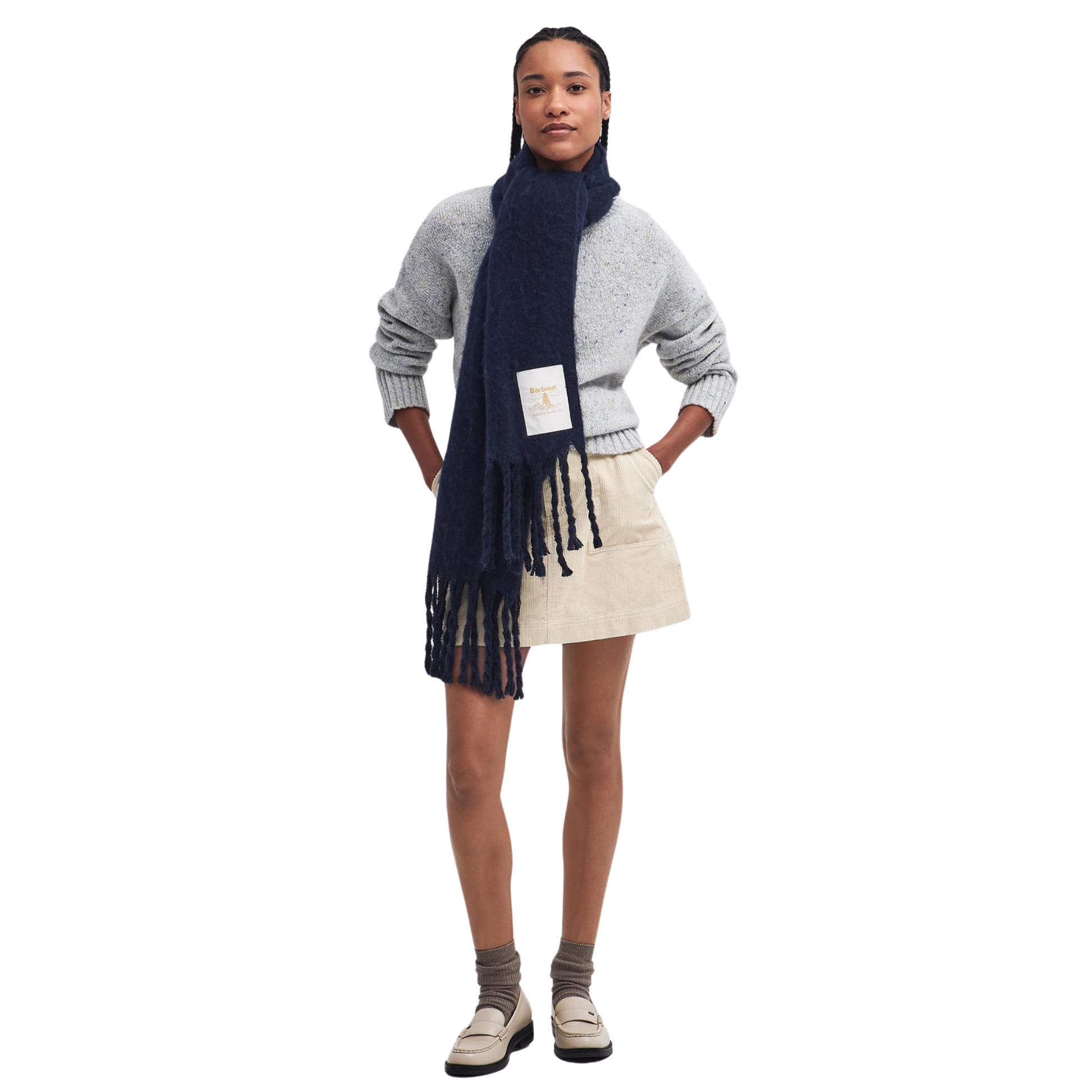Diventati di tendenza negli ultimi anni, i capi con logo oversize non passano di certo inosservati nel tuo guardaroba. Questa sciarpa dall’effetto infeltrito ospita l’inconfondibile logo Beacon di Barbour e rappresenta la fusione perfetta di stile e praticità nella tua collezione di accessori.
