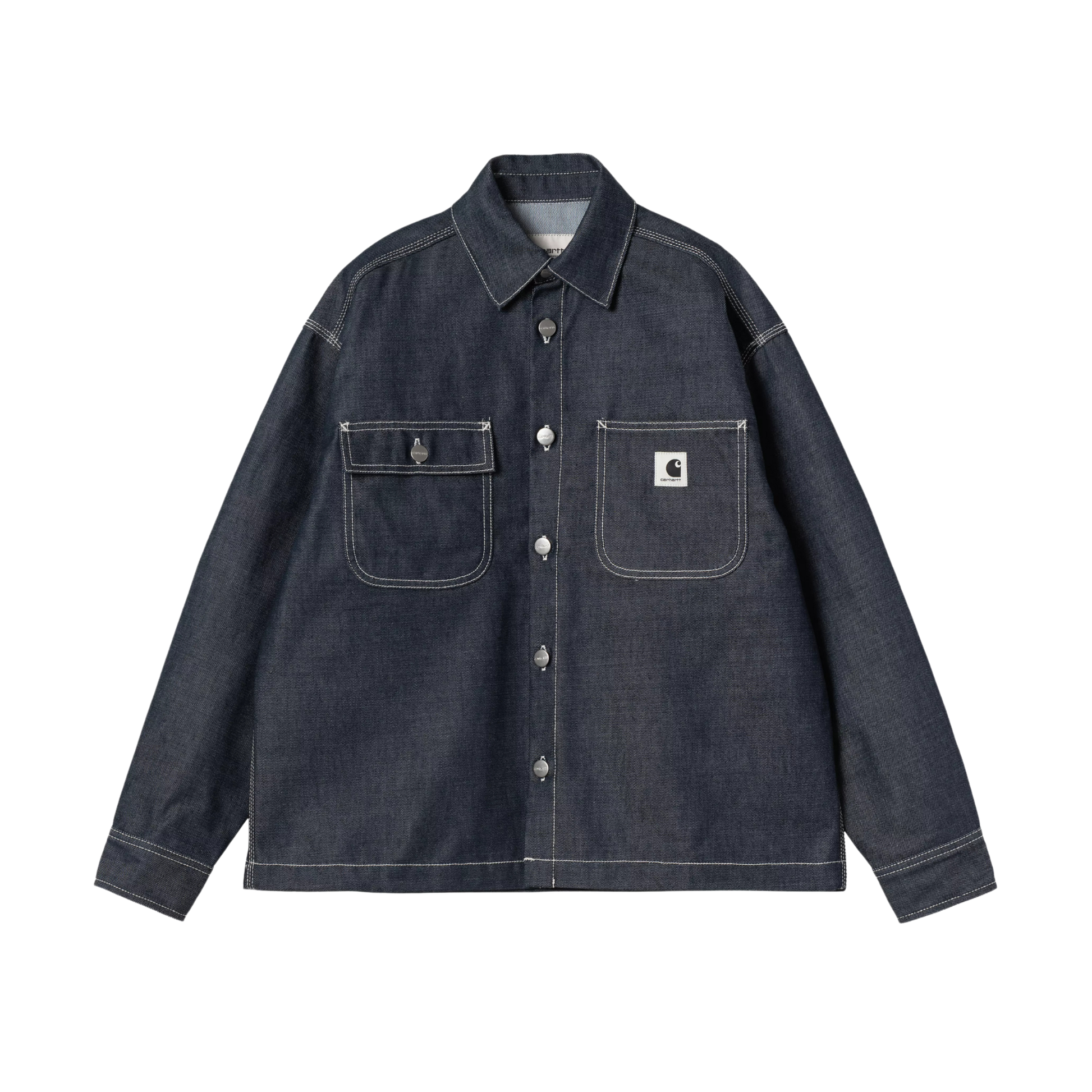 La giacca-camicia Women’s Louis Shirt Jacket è realizzata in pesante denim di poliestere-cotone senza fodera che mantiene la forma originaria senza deformarsi. Il capo presenta inoltre chiusura anteriore con bottoni e due tasche sul petto. L’impuntura a travetta nei punti di maggior usura garantisce ulteriore resistenza. Il design è impreziosito da un’etichetta quadrata in tessuto.